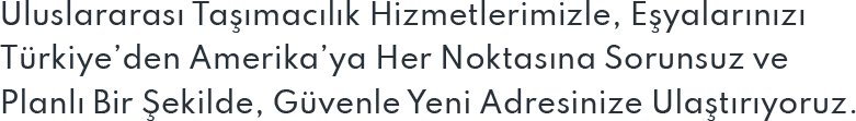 Amerika zati eşya taşıma firması, özel eşyalarınızı uluslararası standartlarda taşır, güvenli bir hizmet sağlar.